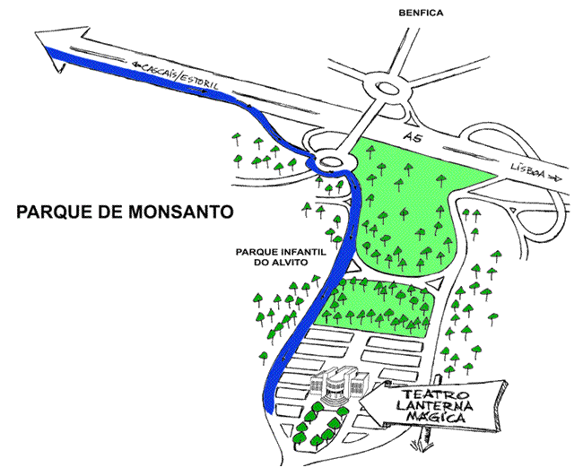O Teatro Lanterna Mágica situa-se em Lisboa, no Bairro do Alvito (Freguesia de Alcântara), à entrada do Parque Natural de Monsanto, a cerca de 700 metros do Parque Infantil do Alvito, e a uns 400 metros do Clube de Ténis de Monsanto.
