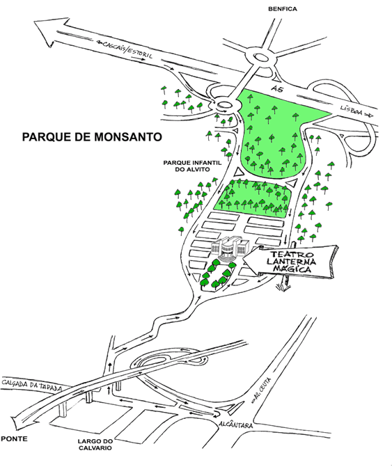 O Teatro Lanterna Mágica situa-se em Lisboa, no Bairro do Alvito (Freguesia de Alcântara), à entrada do Parque Natural de Monsanto, a cerca de 700 metros do Parque Infantil do Alvito, e a uns 400 metros do Clube de Ténis de Monsanto.